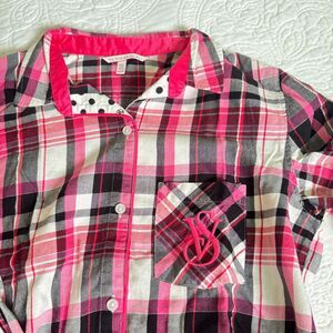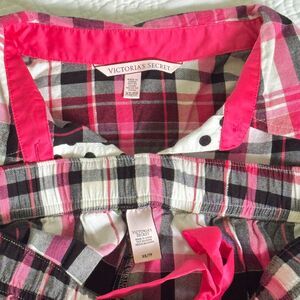 Victoria's Secret Plaid Print VS Logo Embroidered Pajamas Set Pink Black Size XS