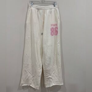 NWT Victoria's Secret S Winter White Ivy Fleece Wide-Leg Split-Hem Sweatpants