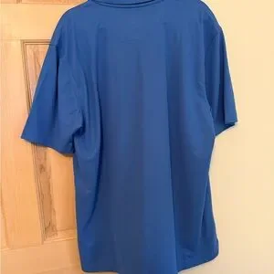 Cobalt blue polo with a sleek collar. Includes a chest pocket and logo detail. Perfect for everyday style.