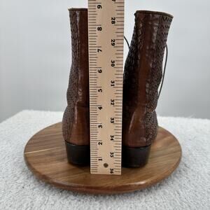 J. Peterman Boots Womens 7.5 Brown Leather Weaved Granny Victorian Academia