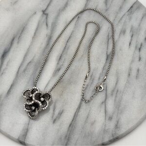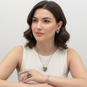 Elegant Tocara jewelry set featuring a sculptural floral motif, crafted in Italy. This coordinated set includes a statement pendant necklace, matching ring, and stud earrings, all executed in solid sterling silver (925) with pavé-set accent stones and oxidized detailing for depth and contrast.