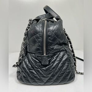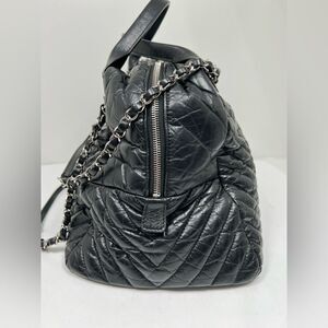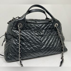 Chanel Soft Bowling Bag Chevron Aged Claf Skin Large Bag