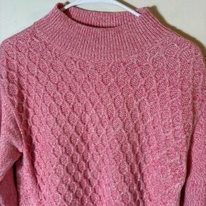 Talbots Cable Knit Mock Neck Sweater Pink Marled Textured Pullover Size Medium