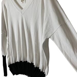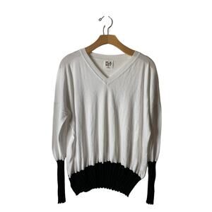 Pre-loved PLANET Lauren G Pima 2 Tone V-Neck Rib Sweater White/Black OS / One Size.