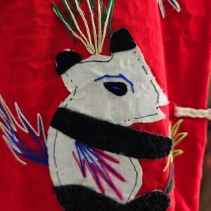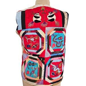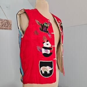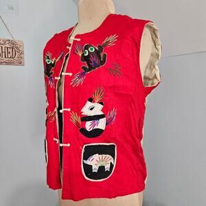 Handmade Red Embroidered Animal Vest Pandas, Frogs, Snakes & More Folk Art 3D