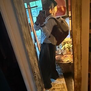This brand new limited edition SOLD OUT release is be worn in, distressed & customized with birkin style gold hardware, a cargo strap running thru raw edge cuts then attached in true rustic fashion with a sewing awl, with visible stitching meant to look elementary & charming. And comes with a gorgeous large furry patch on the backside if wanted!
