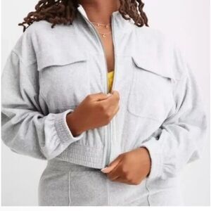 Aerie Groove On Velour Corduroy Cropped Zip Up Jacket