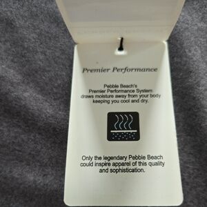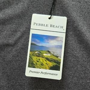 NWT Pebble Beach charcoal gray short sleeve polo shirt. Size XL. No flaws! Like new! Soft and comfortable performance fabric. Material is 94% polyester and 6% spandex. Perfect for a day on the golf course, tennis court, or for casual wear. PTP is approximately 21.5 inches and length is approximately 25 inches. Embroidered patch on left sleeve reads Promoshop but you might be able to remove it.