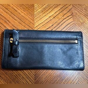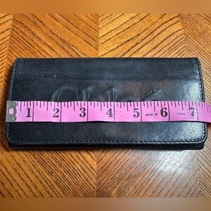 Elegant black leather wallet by Chloé. Features embossed logo.
