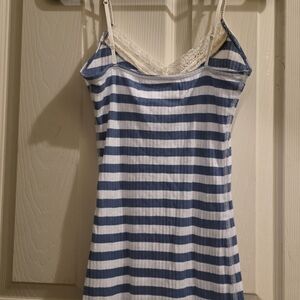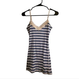 Vintage Y2K Abercrombie & Fitch Blue Striped Tank Top Cami Lace Trim Size S