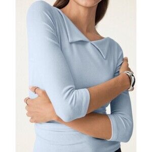 OGL EcoMousse LiteWarm Blue Flapped Boat Neck 3/4 Sleeve Brami Top.