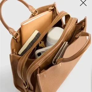 QUINCE Italian Leather Cognac Medium Convertible Satchel Bag