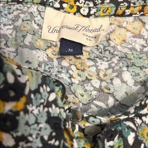 Stylish blouse with floral pattern. Features shades of yellow, green, and white.