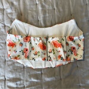 This corset top is cropped in length and has boning detailing in bodice, high peaks at bust, curved edge, exposed silver zipper at back, grip tape and is self lined. Pair with jeans and heels for the perfect night out outfit.