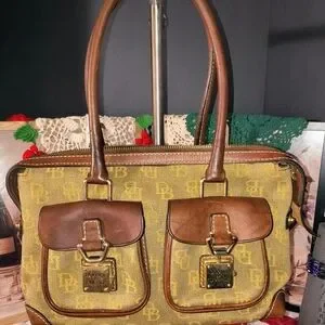 Dooney & Bourke Vintage Handbag Gold & Brown, Canvas & Leather, Sturdy