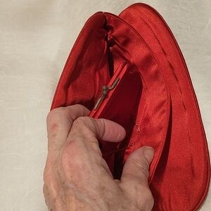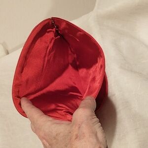Add a touch of vintage elegance to your evening ensemble with this stunning Moris Moskowitz (MM) red satin clutch. This beautifully crafted handbag exudes timeless glamour, perfect for formal occasions, cocktail parties.