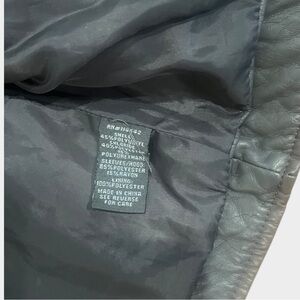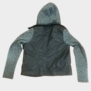 Gray Faux Leather Jacket with Knit Sleeves and Removable Hood