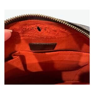 - Interior red microfiber lining, tear in the inner lining (please see photo)
