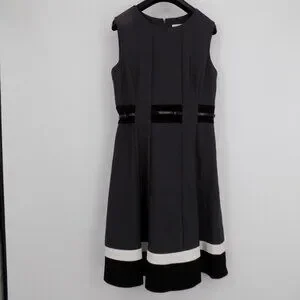 Calvin Klein Women Gray Belted Lined Sleeveless Fit and Flare Dress Size 4