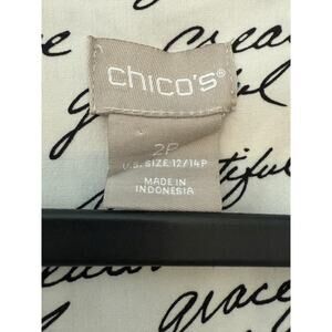 Chico’s Script Print Long Sleeve Button Down Blouse size 2P - L/12P
