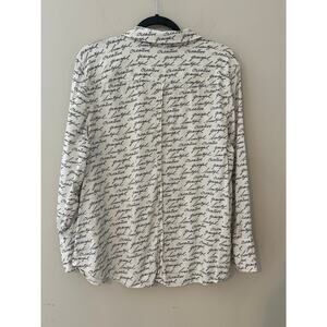 Chico’s Script Print Long Sleeve Button Down Blouse