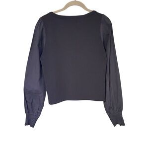 Anthropologie long sleeve mixed materials top puff cotton sleeves Small