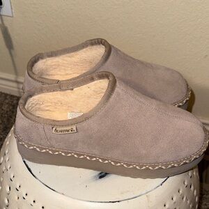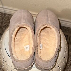 Comfortable taupe suede slip-ons with soft lining. Ideal for cozy wear. Barely worn. Smoke free home.