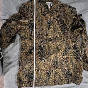 Beautiful sleek sleeveless dress with goregous paisley coat with gold, black & brown detail, shoulder pads in jacket