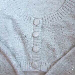 Color is more grey, off toned white, with small glittery sequins and tinsel like thread running through the sweater.