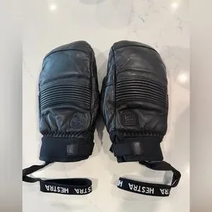 Stylish and warm Hestra mittens. Durable leather construction. Ideal for cold weather.