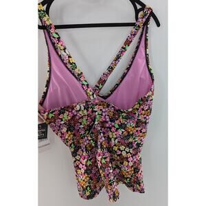 California Waves Swim Halter Tankini Top Ditsy Pluse Size 1