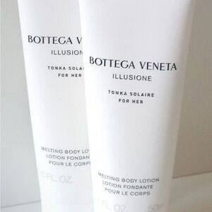 Bottega Veneta Illusione Tonka Solaire For Her Melting Body Lotion Brand New, Never Used (NWT - New With Tags). This is a luxury travel-size (50ml / 1.6 fl oz) tube of Bottega Veneta Illusione Tonka Solaire Melting Body Lotion for her. Scent Profile: Part of the Illusione Tonka Solaire collection, which features a floral-fruity scent. Key notes often include Black Currant, Orange Blossom, Fig Leaf, Olive Tree, and Tonka Bean. It's a gorgeous, sensual, and warm scent, perfect for layering with the EDP. Product: A rich, moisturizing Melting Body Lotion that leaves skin smooth and delicately scented. Perfect for a luxury travel bag, purse, or to try the scent before committing to the full size! Rare/Sample: Note this is often a gift with purchase or deluxe sample. This size is generally not sold individually at retail, making it a desirable collector's/travel item. Made in Monaco. Thank you for shopping my closet.