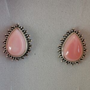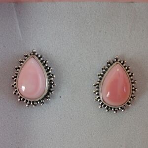 Pink Queen Conch Shell Teardrop Silver Earrings