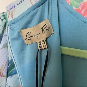 NWT Lindy Bop Retro Amelia Dress Mint Planes Floral Size US 12 Love Letters Blue