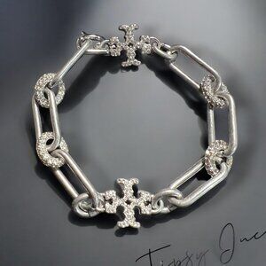 NEW!! Beautiful Tory Burch Silver and Crystal Pave Roxanne Bracelet