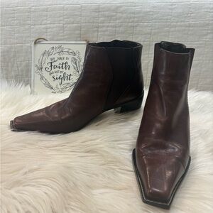 Stuart Weitzman Dark Brown Leather Western Booties EUC Sz 8