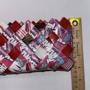 Vintage 90s Y2K STYLE Twizzler Cherry Berry Strawberry Candy Wrapper Zip Handmade in Mexico Small Clutch Purse, Brand New w/ Tags. Super cute and resembles the purses that were carried in the late 90s/early 2000s but I do not think it is actually vintage, it appears to be a remake, but I am not certain.