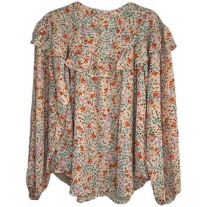 Heyson Peach Floral Button Down Long Sleeve Blouse Size Medium NWT