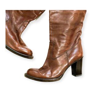 barbara bui boots, archival barbara bui, brown leather boots, knee high leather boots, y2k designer boots, early 2000s boots, italian leather boots, block heel boots, pull on leather boots