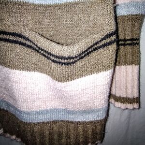 The Caslon Women's Soft Knit Striped Open Long Cardigan in size medium is a versatile and stylish addition to any wardrobe. Made from a blend of nylon, mohair, cotton, wool, and acrylic, this cardigan features a classic multicolor striped design and a comfortable knit fabric. Perfect for casual occasions during the winter, fall, and spring seasons, this cardigan from the brand Caslon sold at Nordstroms is a classic quality choice for women looking for a cozy yet fashionable sweater cardigan option. The blend of neutral colors with added pastel pink and baby blue, makes this sweater great for a number of aesthetics like academia, preppy, granny chic, 90's Friends Rachel Green, Phoebe Buffet vibes, and much more!