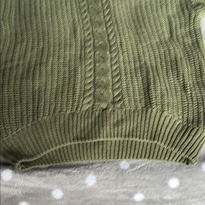 This green hooded sweater features a thick chunky knit material that provides a cozy and textured look. The ribbed knit pattern adds a stylish touch, while the long sleeves ensure warmth and comfort. Perfect for layering during cooler days.