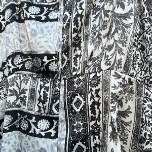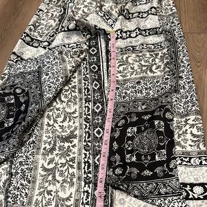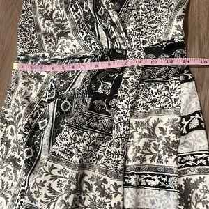 Zara spaghetti strap maxi dress in gently used condition (no stains or holes noted, tiny bit of wear on left strap). I tried on and the bust area seems a little loose on me. It could be because I have a short torso and the straps are too long for me. The previous owner had put sticky tape on bust area, so there’s still a little bit of sticky feel, although I removed the tape. Zipper entrance in back, non-adjustable straps, asymmetrical hem, 16” side slit at bottom left side. Approximate measurements: length 45” at shortest section and 52” at longest part of hem; 17” armpit to armpit laying flat (can go to 18” + with stretch applied); waistline 14” laying flat; hips 18” laying flat. 100% polyester, very lightweight, feels like slip material.