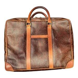 ETRO Vintage Paisley Bag Leather Briefcase Travel Office Dual Top Handle Lined