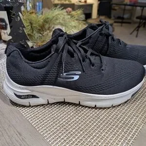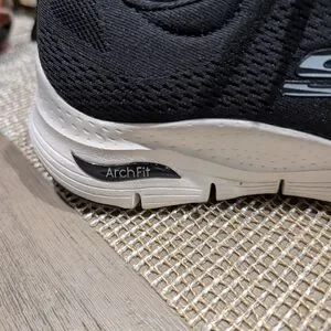 Sleek black sneakers with Arch Fit support. Lightweight and breathable design.