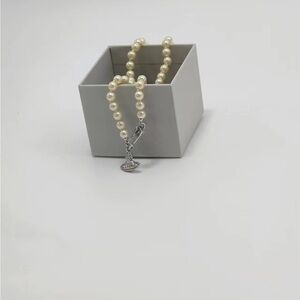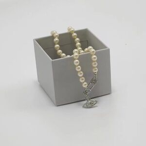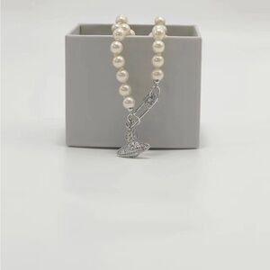 Vivienne Westwood Silver Brooch Pendant Pearl Necklace