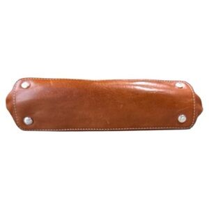 Leather saddlebag by Michael Kors in a beautiful warm tan color. Two front buckles silver toned that reveals a snap pocket. Inside the main zippered compartment is one large open space with a zipped pocket on one side with Michael Michael Kors label. The other side has two open pockets. Fabric inner lining. Interior attached leather strap with clasp for attaching key ring. Metal footed bottom. Great craftmanship that has stood the test of time. The leather is soft and distressed in all the ways you would expect a vintage leather bag to be.
