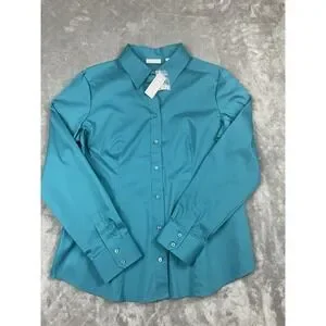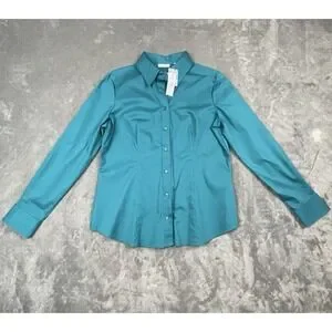 NY&C Teal Stretch Button Down Shirt Women XL NWT Long Sleeve Fitted Blouse Work