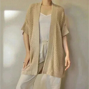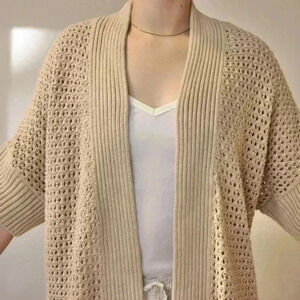 Lauren Conrad Cardigan Sweater Size Medium Open Front Tan waist Tie Knit