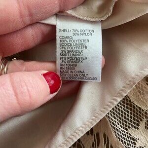 Gianni Bini formal dress, women’s 6, shell-70% cotton/30% nylon, lining-97% polyester/3% spandex.