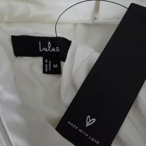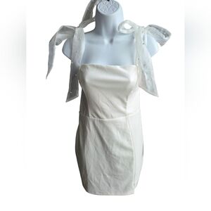 Lulus Beaming Perfection White Pearl Organza Tie-Strap Mini Dress Wedding Size M